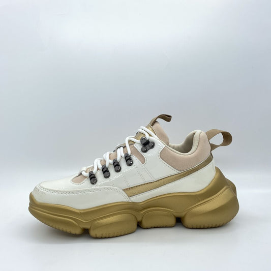 Beige Multi-Tone Chunky Sneaker with Geometric Accent