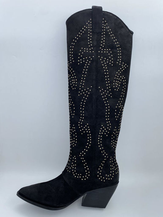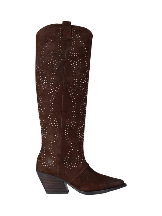 Brown Suede Western Boots with Embroidered Detail