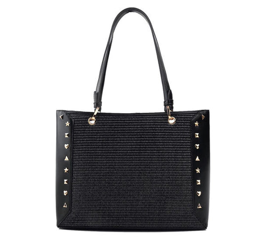 Black Studded Textured Tote Bag