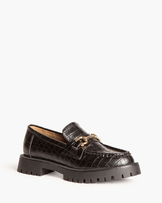 Black Patent Loafer with Gold Accent