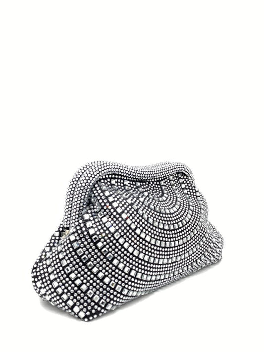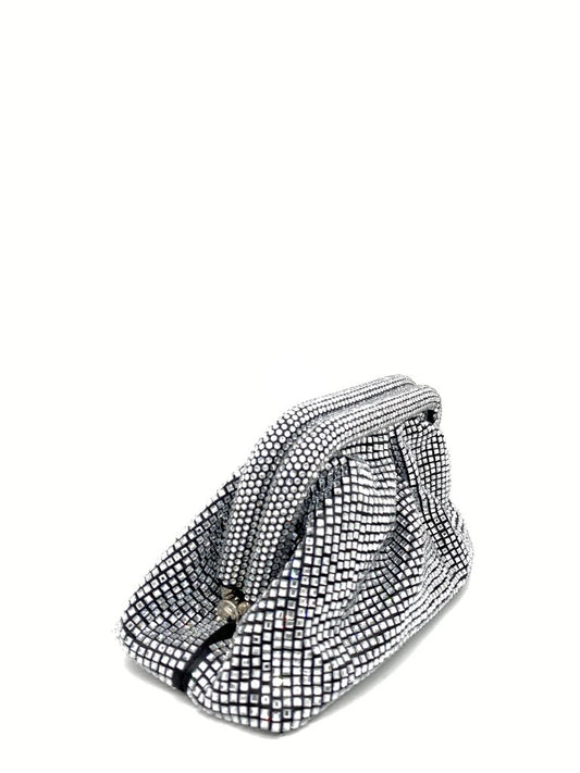 Beige Knit Wooden Frame Clutch with Gold Chain