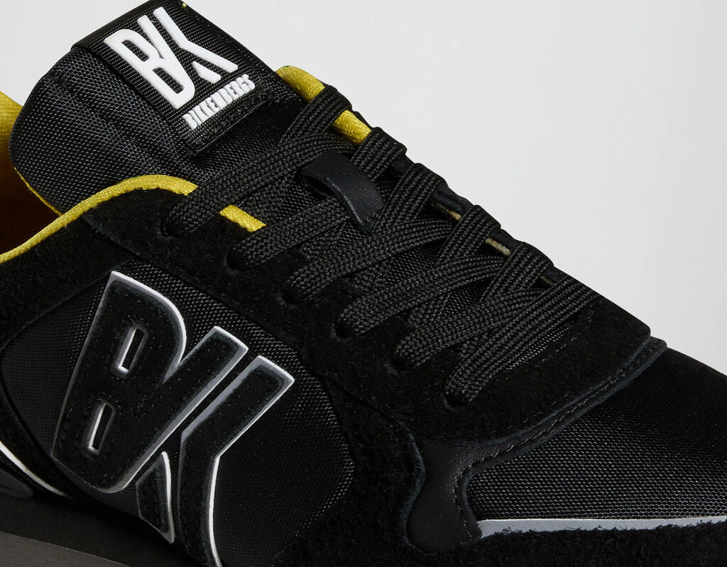 Black Textured Sneakers with Yellow Accents