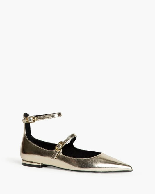 Gold Metallic Mary Jane Flats with Black Cap Toe
