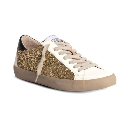 Gold Glitter Low-Top Sneaker with Lace-Up