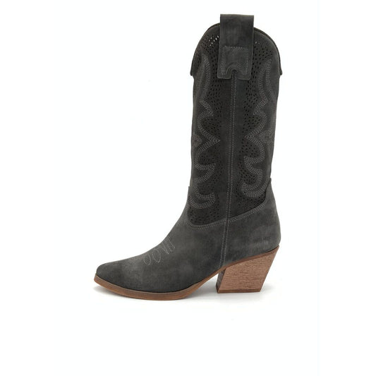 Gray Suede Pointed Toe Ankle Boots with Slim Heel