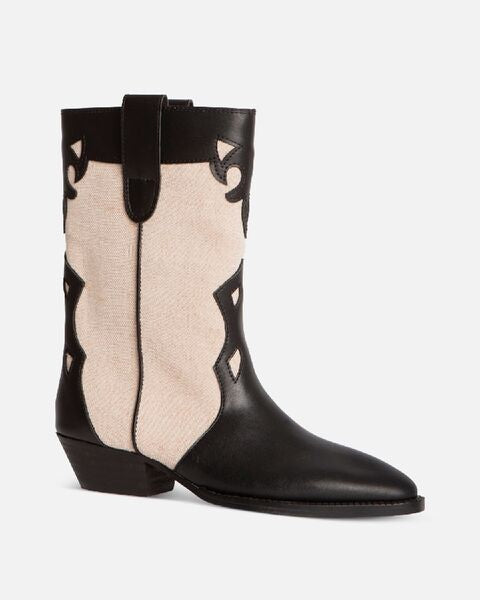 Black and Beige Leather Cowboy Boots with Cut-Out Detail