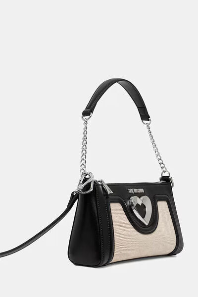 Black and Beige Leather Shoulder Bag with Heart Accent