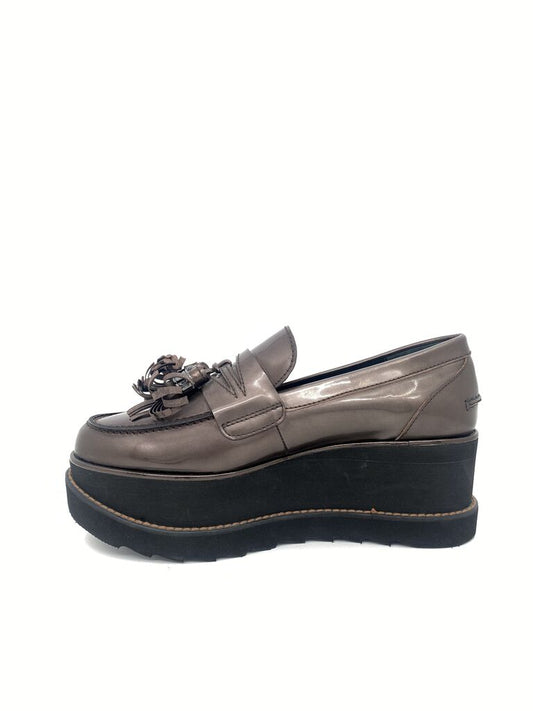 Metallic Textured Platform Loafers with Fringed Accent