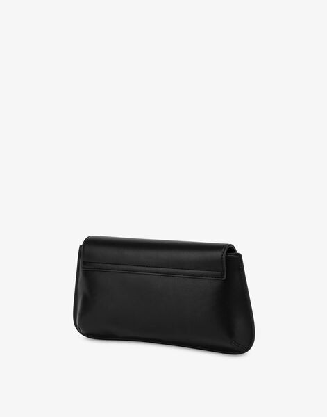 Black Faux Leather Clutch with Gold Love Detail