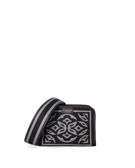 Black Geometric Embroidered Pouch with Zipper