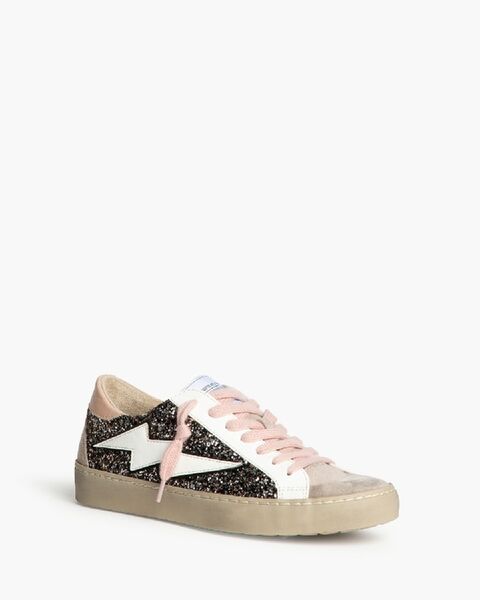 Black Glitter Low-Top Sneakers with Lightning Detail
