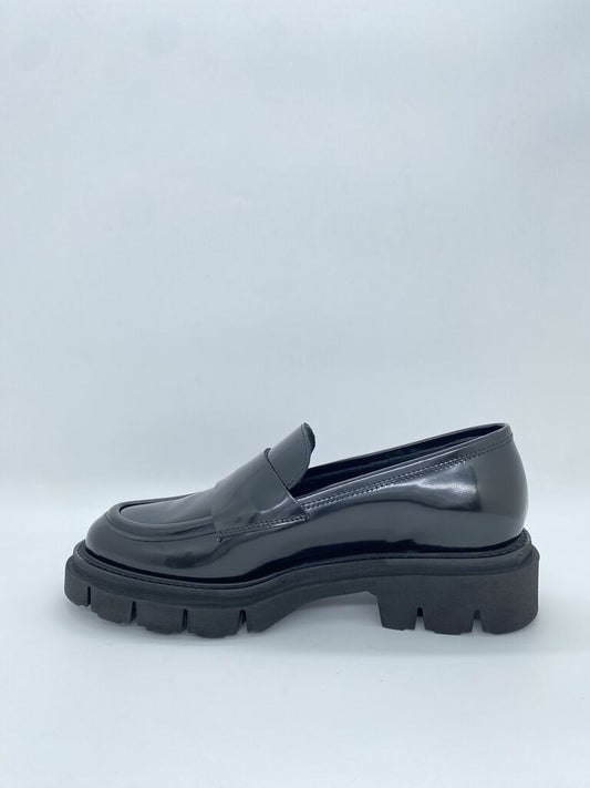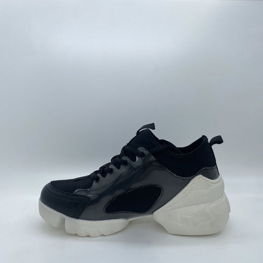 Black Glossy Platform Ankle Boots with Lace-Up Design