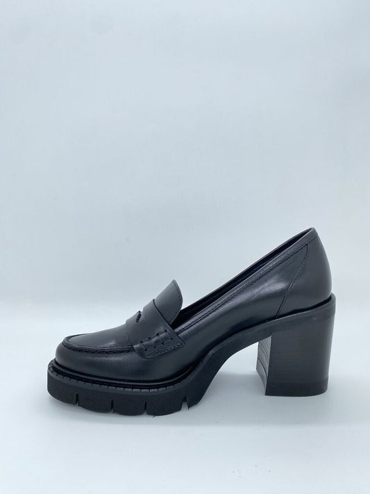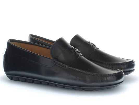 Black Leather Loafers with Chunky Sole and Buckle Detail