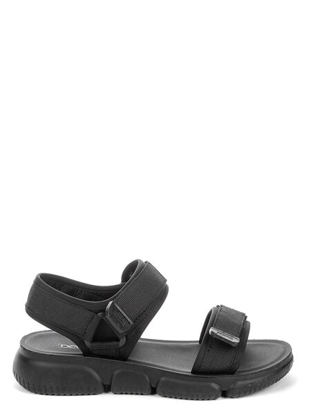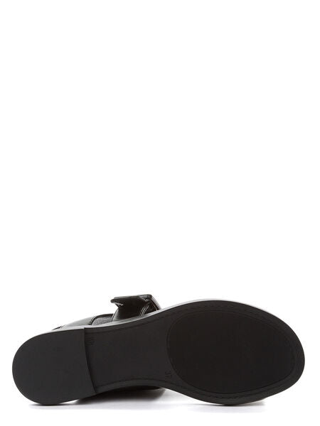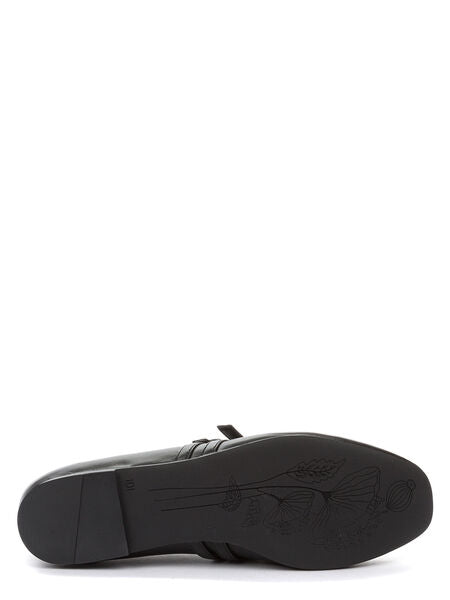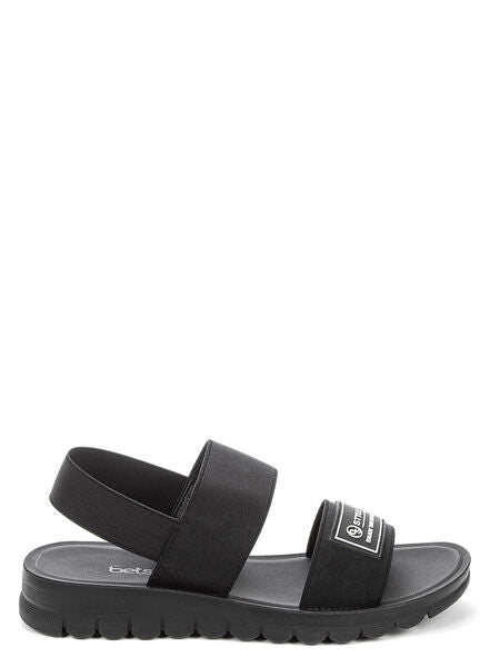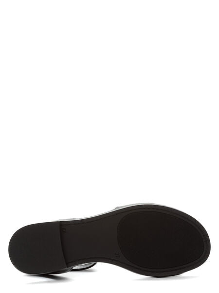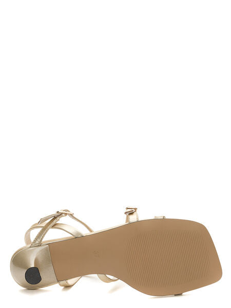 Black Strappy Mid-Heel Sandal with Gold Accents