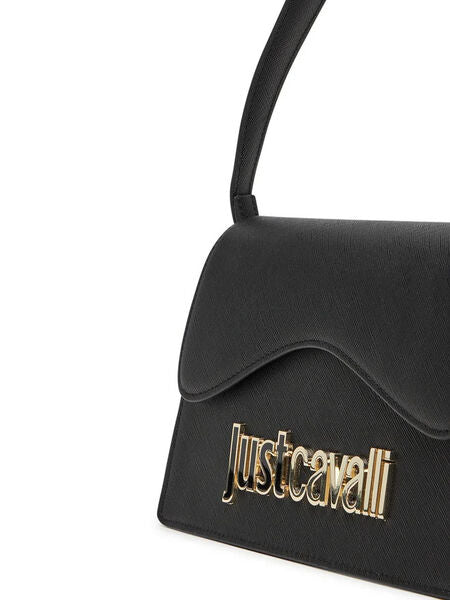 Black Structured Handbag with Metal Logo Accent