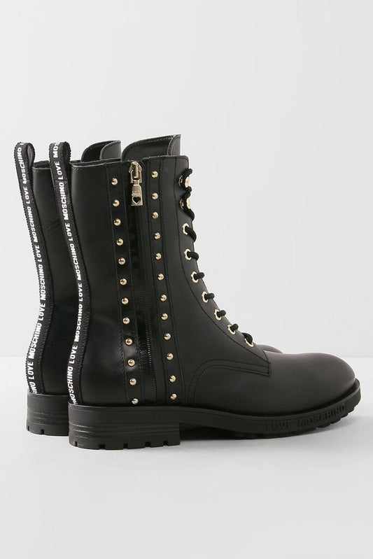 Black Studded Combat Boots with Lace-Up Closure
