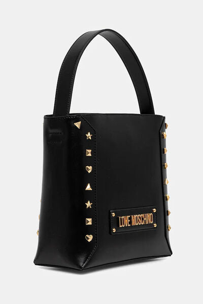 Black Structured Shoulder Bag with Gold Stud Accents