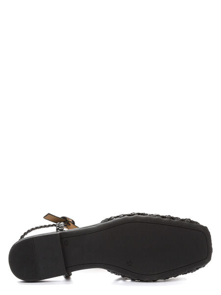 Black Woven Slingback Flat Sandal