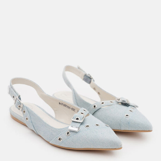 Blue Denim Ballet Flats with Rhinestone Embellishments