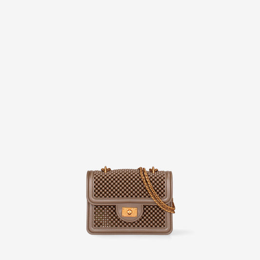 Brown Sheer Polka Dot Blouse with Ruffled Front