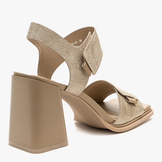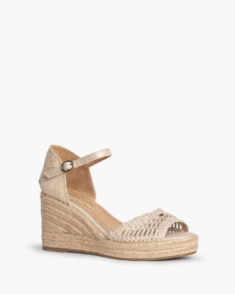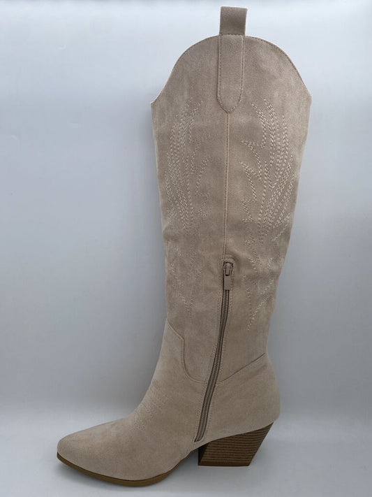 Beige Suede Wedge Ankle Boots with Embellished Strap