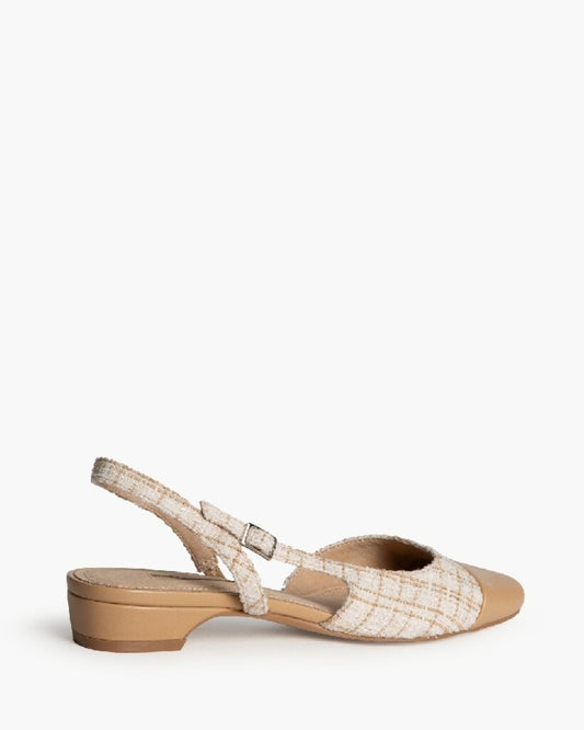 Beige Textured Mary Jane Ballet Flats with Buckle