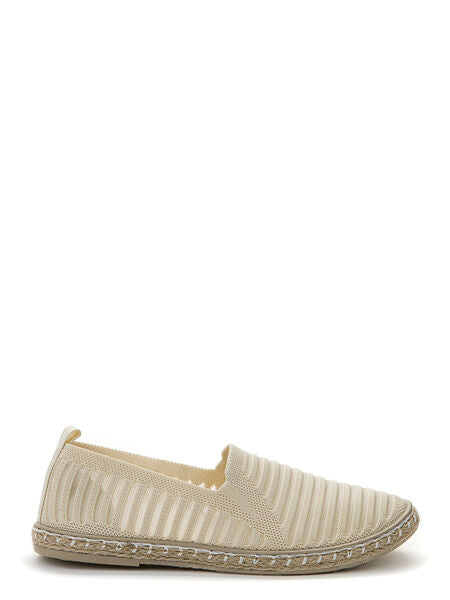 Beige Textured Slip-On Loafers with Espadrille Sole