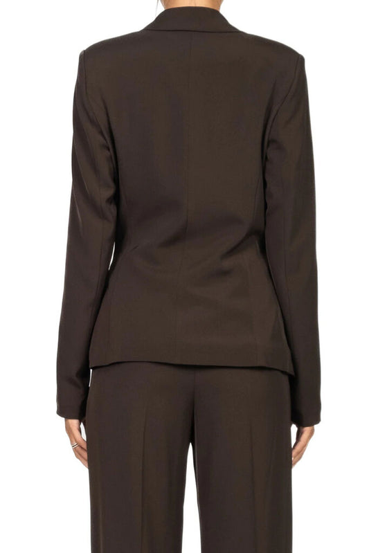 Dark Jacket with Bold Lapels and Gold Chain Detail