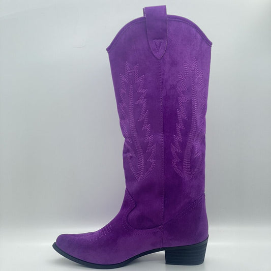 Purple Suede Western Boot with Decorative Stitching