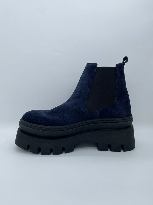 Taupe Suede Platform Ankle Boot with Elastic Panels