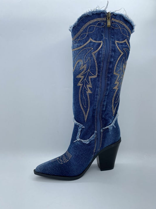 Brown Leather Mid-Calf Boots with Buckle Detail