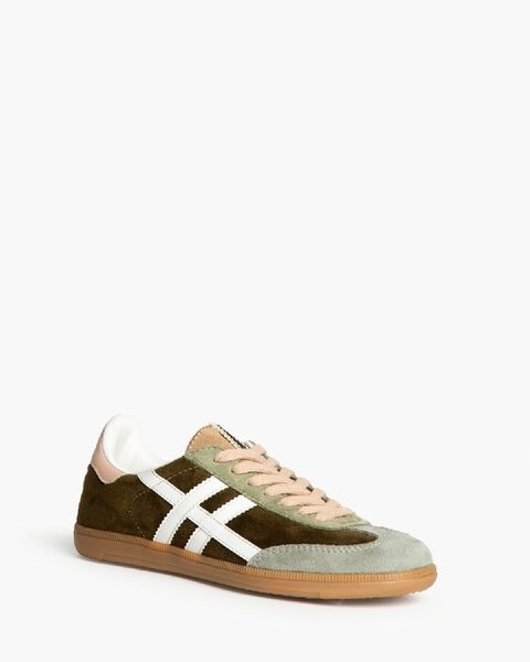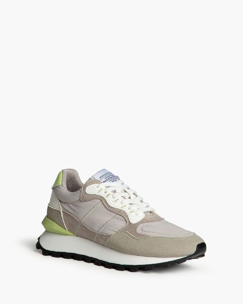 Taupe Mesh Suede Sneakers with Lace-Up Closure
