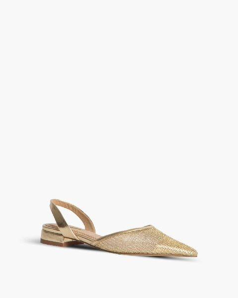 Gold Metallic Slingback Heels with Pointed Toe Design