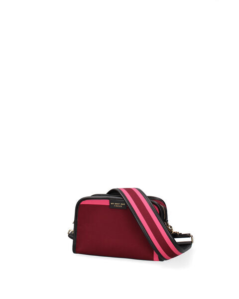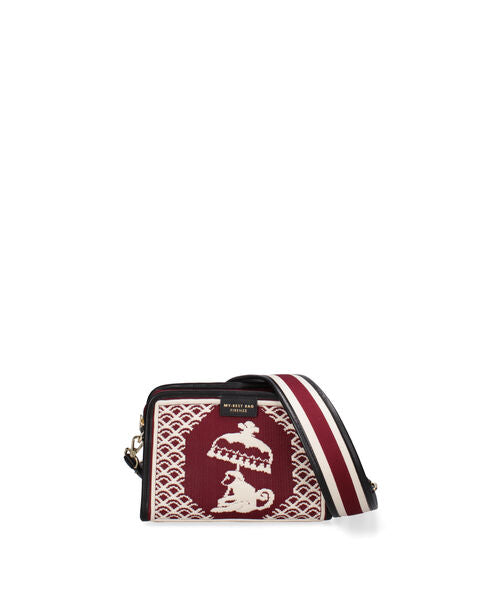 Red Embroidered Crossbody Bag with Geometric Pattern