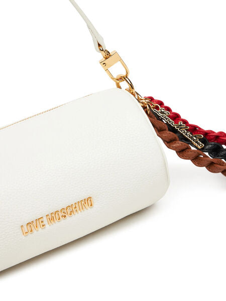 White Chain Accent Shoulder Bag with Gold Details