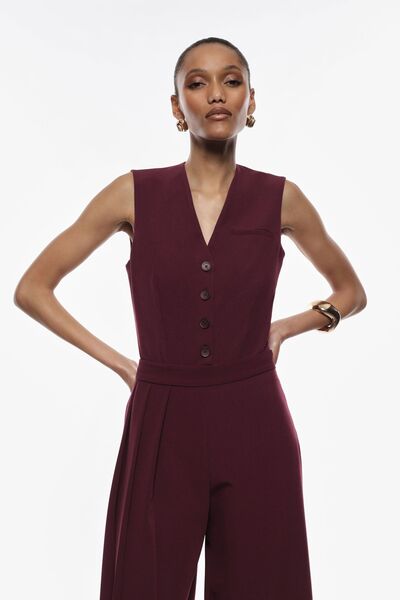 Burgundy Buttoned Bodysuit with Tailored Vest Design