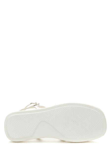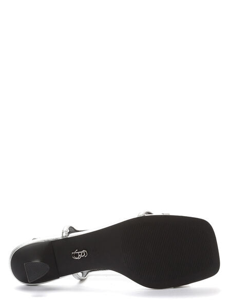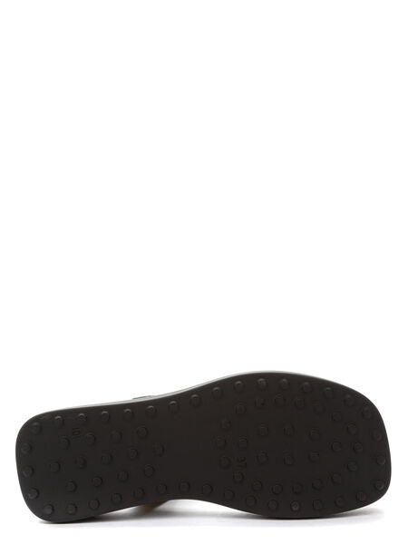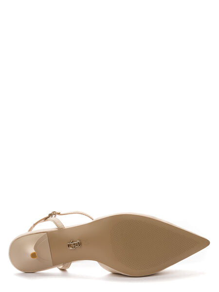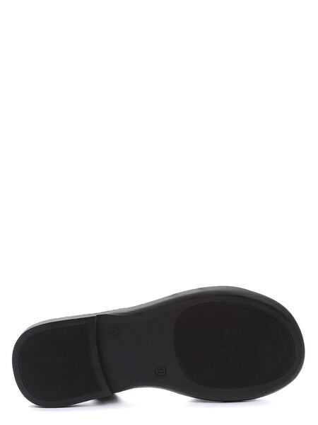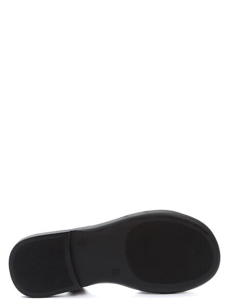 Black Leather Sandal with Gold Buckle and Artistic Heel