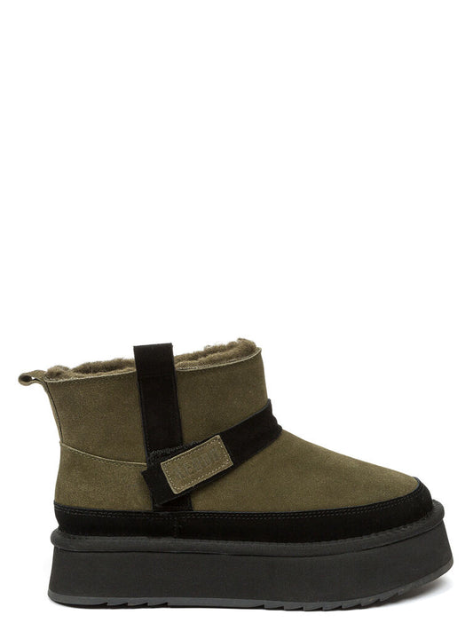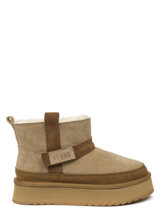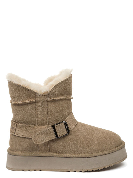 Taupe Suede Mid-Calf Boot with Buckle Detail