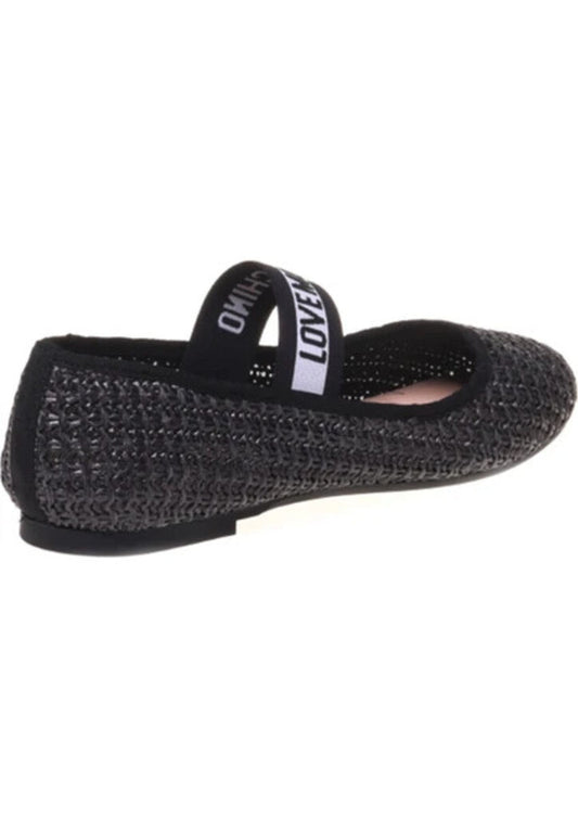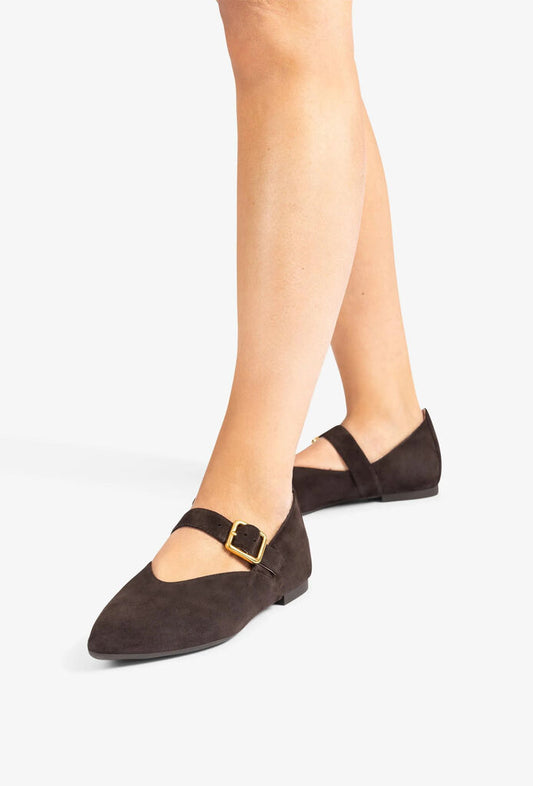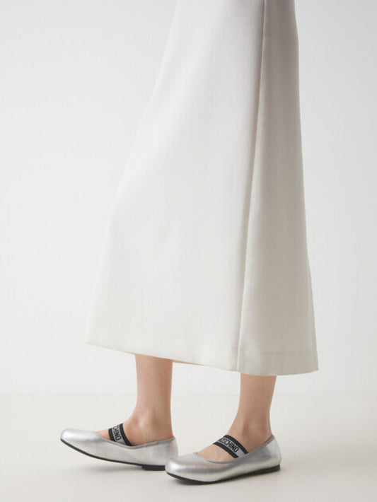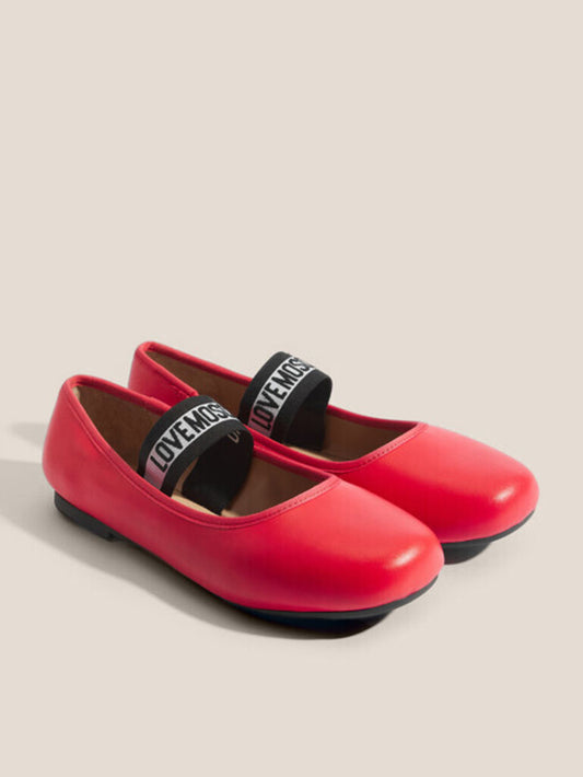 Fuchsia Red Leather Ballet Flats with Elastic Strap
