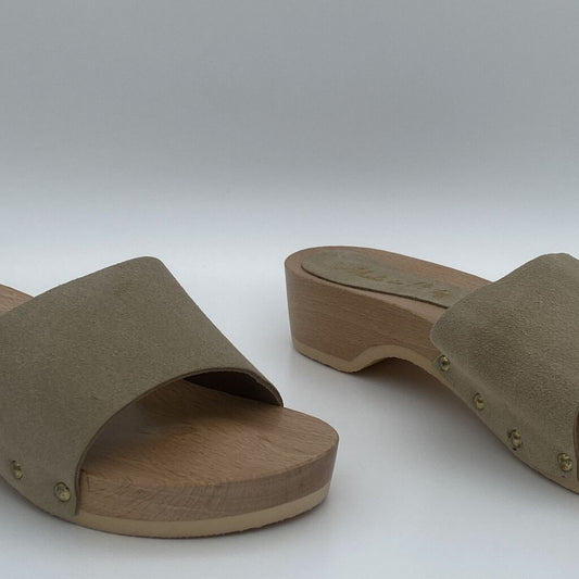 Fuchsia Wooden Slide Sandals with Rivet Detail