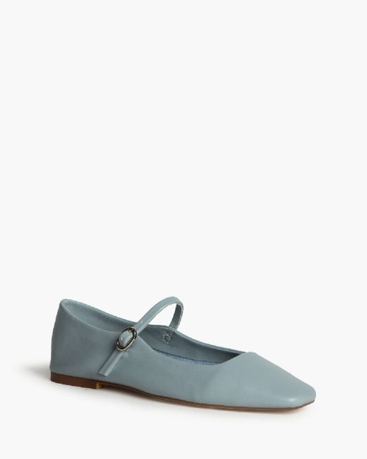 Silver Patent Leather Mary Jane Flats with Black Cap-Toe