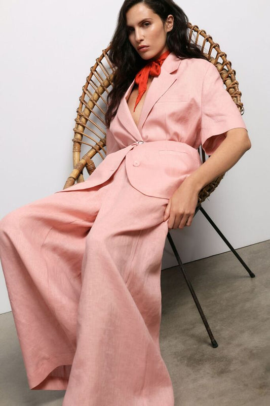 Blush Wide-Leg Linen Pants with Elastic Waist
