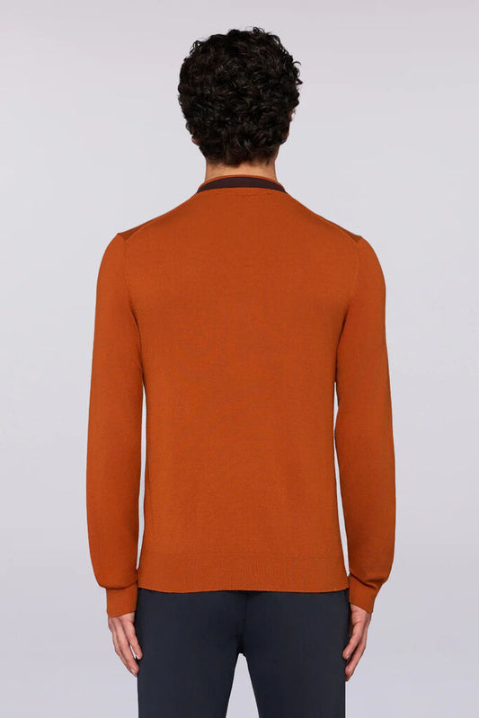 Rust Knit Long-Sleeve Polo with Contrast Collar