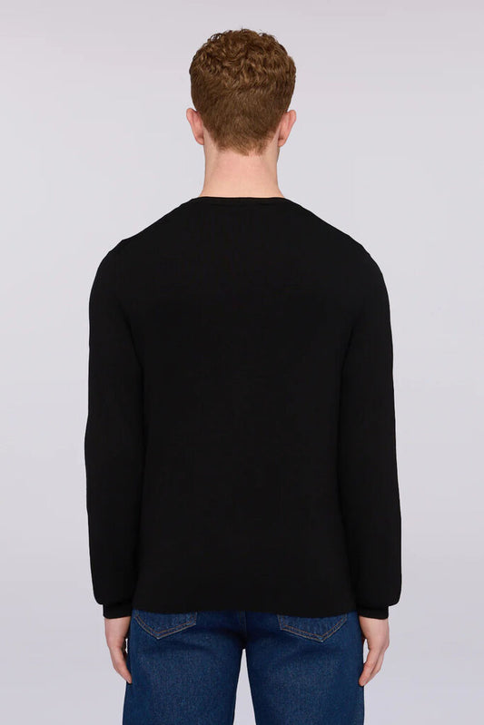 Black Knit Long-Sleeve Crew-Neck Sweater