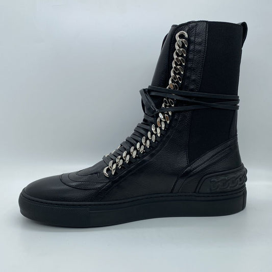 Black Textured High-Top Sneakers with Chain Detail