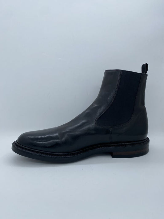 Black Leather Chelsea Boot with Elastic Side Panels