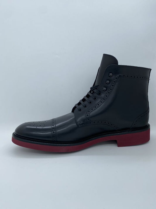 Black Leather Brogue Boots with Red Sole
