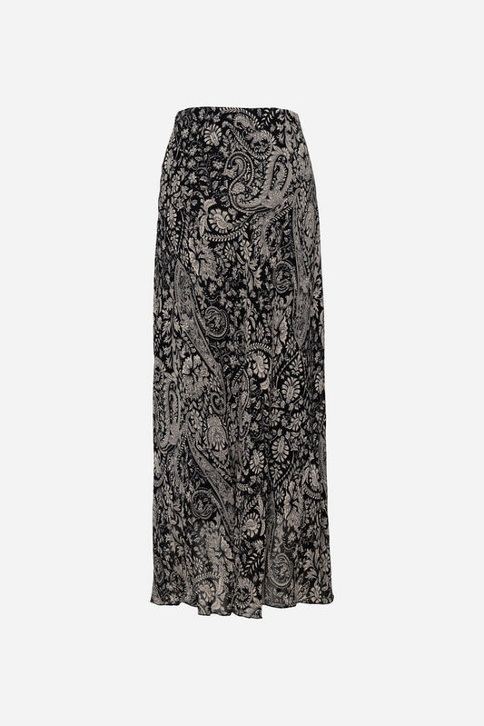 Charcoal Paisley Midi Skirt with Flowing Silhouette