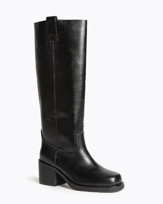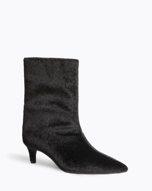 Brown Textured Mid-Calf Boot with Pointed Toe