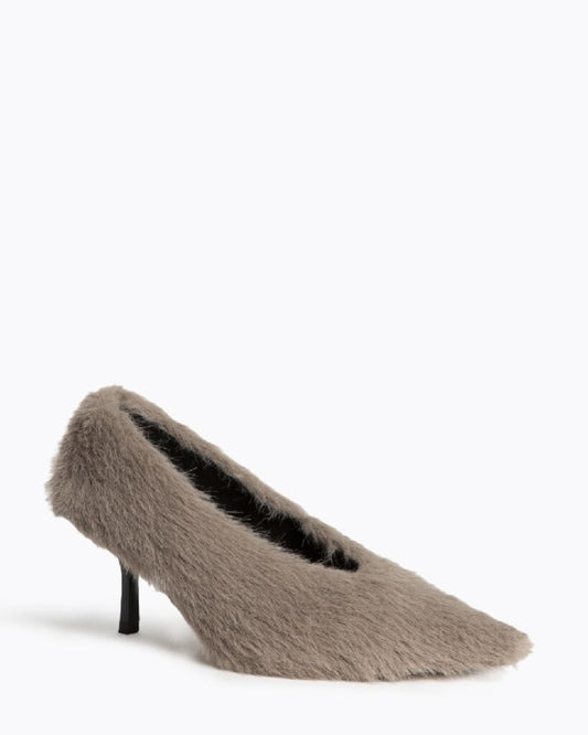 Faux Fur Textured Pointed Pumps with Sleek Heel
